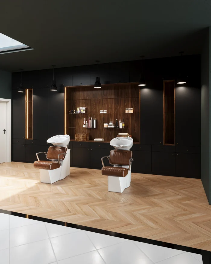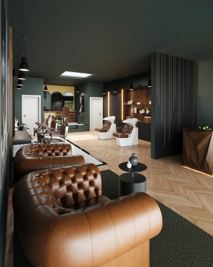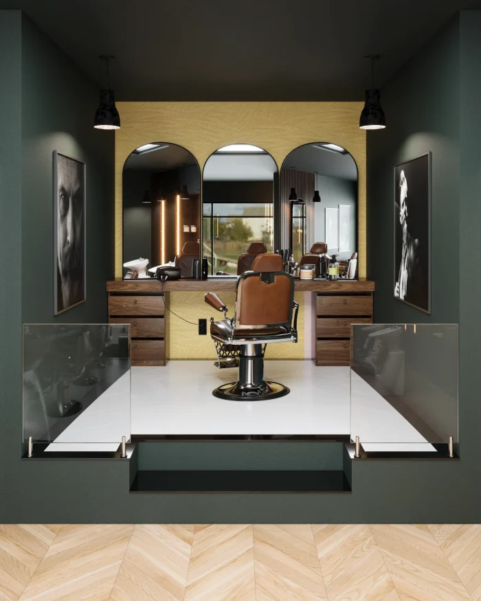 A modern barber shop that honors the craft. Dark wood, brass mirrors, leather chairs, and a rhythm that feels like a ritual. Designed for precision, comfort, and the kind of attention to detail that makes you want to return.