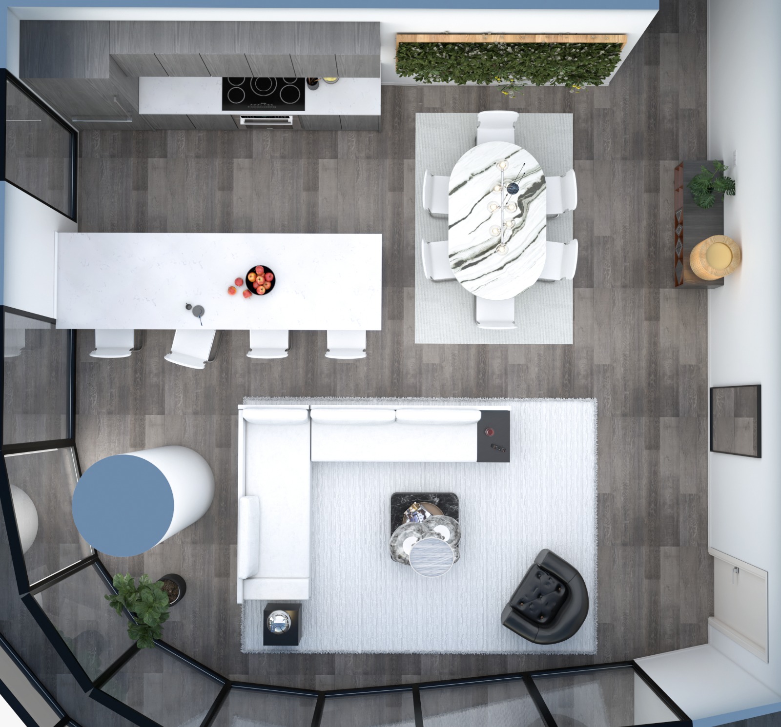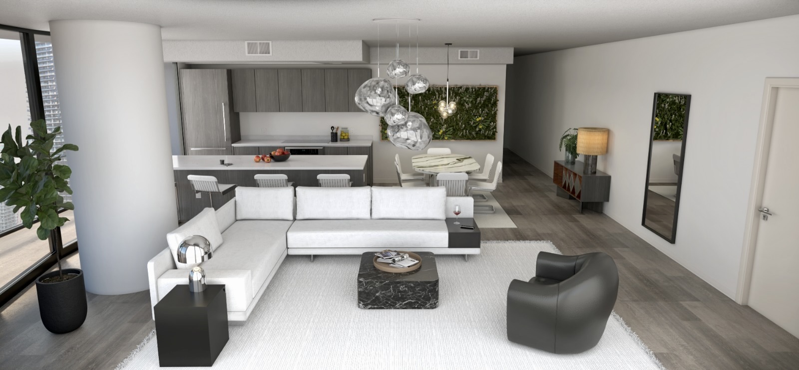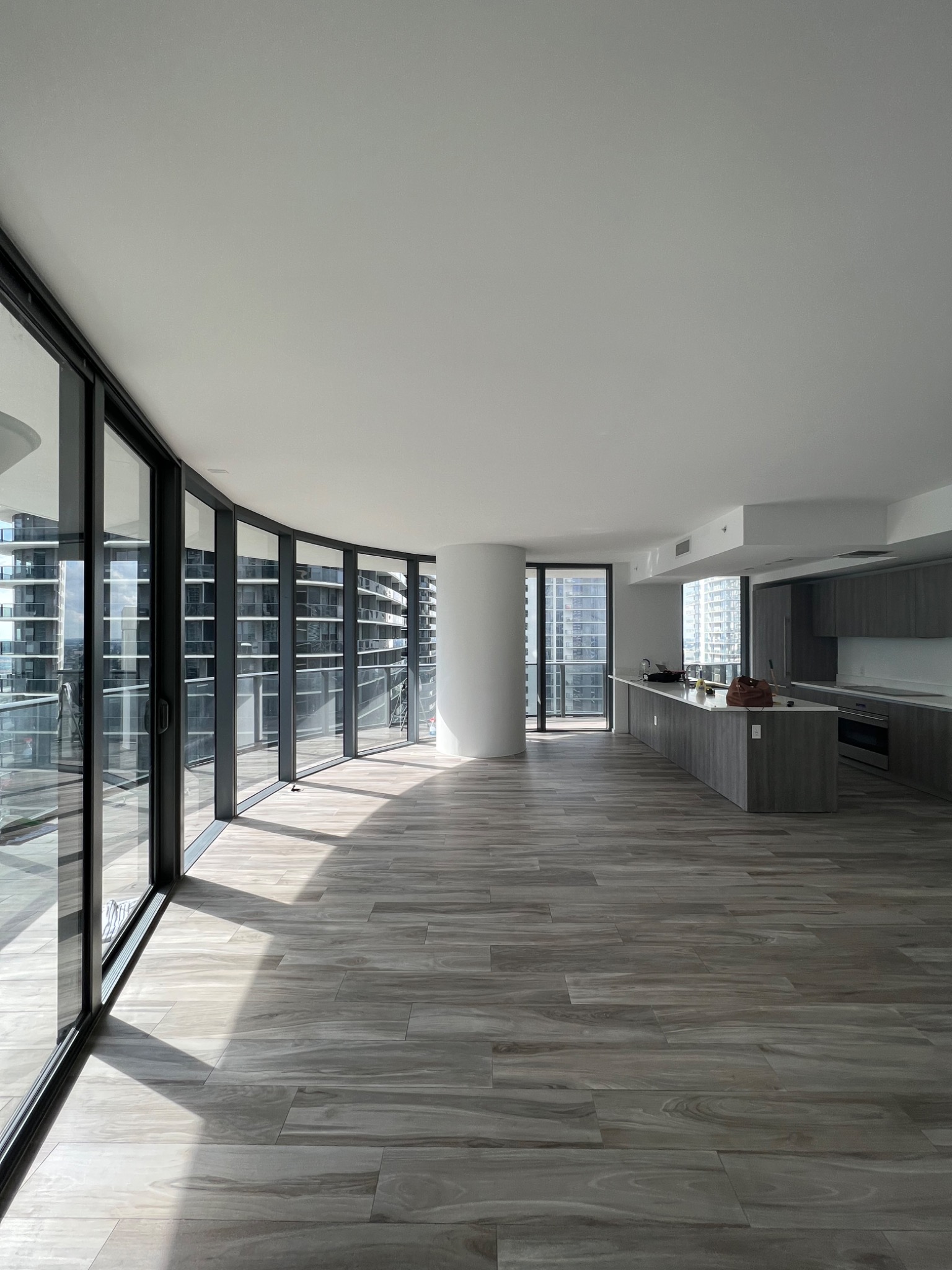 Turnkey in less than a month. Designed for an influencer who wanted James Bond in Miami. Lenny Kravitz for CB throughout, a living green wall, black marble, globe pendants, floor-to-ceiling glass over Brickell. Minimal, cinematic, unmistakably Miami.